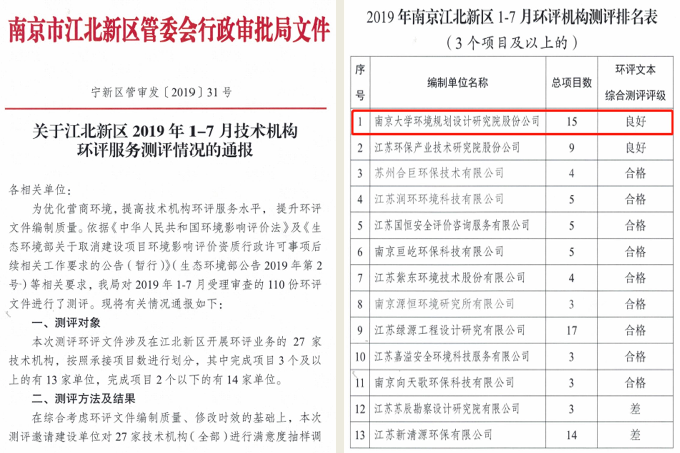 環(huán)評(píng)業(yè)務(wù)連續(xù)兩年在江北新區(qū)測(cè)評(píng)中拔得頭籌