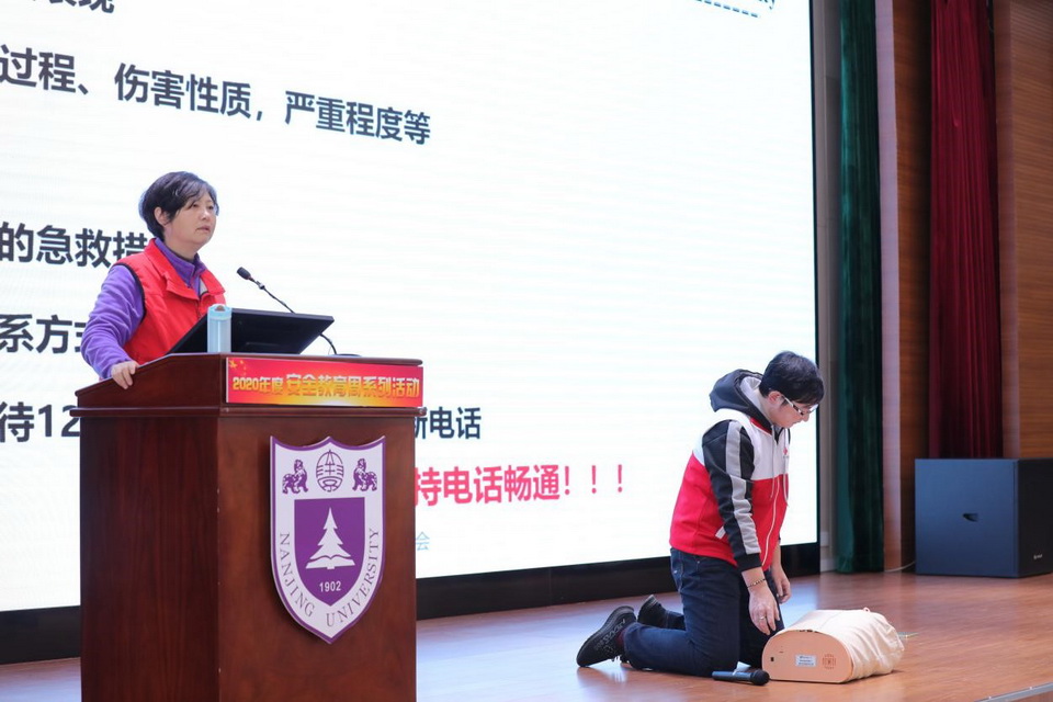 本次安全教育培訓(xùn)分應(yīng)急救護(hù)知識(shí)與消防安全知識(shí)兩個(gè)部分。應(yīng)急救護(hù)培訓(xùn)由江蘇省紅十字會(huì)專(zhuān)家團(tuán)隊(duì)講解心肺復(fù)蘇、氣道異物梗阻、燒燙傷、創(chuàng)傷救護(hù)等基礎(chǔ)應(yīng)急救護(hù)知識(shí)。她的講課圖文并茂,、通俗易懂,并通過(guò)演示教學(xué)的方式讓員工們充分了解正確救護(hù)的重要性,并了解應(yīng)急救護(hù)的基本知識(shí)。