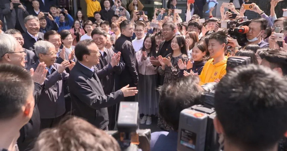 3月26日上午,中共中央政治局常委、國務院總理李克強來到南京大學仙林校區考察。了解基礎研究情況,查看研究成果轉化應用,鼓勵科研人員加強跨領域協作,推動融合創新,他與學校院士們親切交談,希望一代一代傳承推動創新。李克強十分關心畢業生就業,專門聽取學校匯報,他與學生們交流,詢問今年畢業學生的就業意向和簽約情況。李克強勉勵廣大學生說,你們要記住南大校訓中說的“誠樸雄偉”,要潛心向學,踏踏實實,從近處、小處做起,將來實現遠大志向,利社會,利國家。國務委員兼國務院秘書長肖捷、教育部黨組書記、部長陳寶生,江蘇省委書記婁勤儉,省長吳政隆等領導一同參加考察。校黨委書記胡金波、校長呂建陪同考察調研。