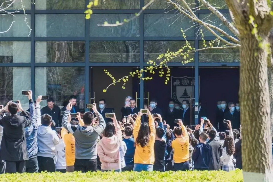 “我剛才一入校門的時候,看到你們的電子標牌上,寫著誠樸雄偉......”,總理話音未落,同學們便熱切地接上下半句:“勵學敦行!”“還有一句是嚼得菜根……”“做得大事!”