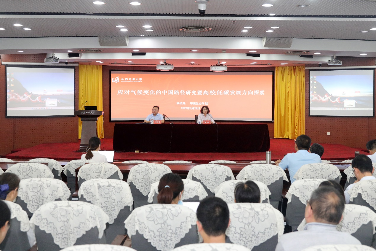 2022年6月23日,南大環規院集團常務副總裁吳俊鋒研究員受邀帶隊回訪江蘇開放大學,并做《應對氣候變化的中國路徑研究暨高校低碳發展方向探索》主題報告,江蘇開放大學牛玉韜副校長,張曉副校長,教務處、科技處、后勤處、基建處及環境生態學院、建筑工程學院等5個院系的主要領導及教師出席講座。