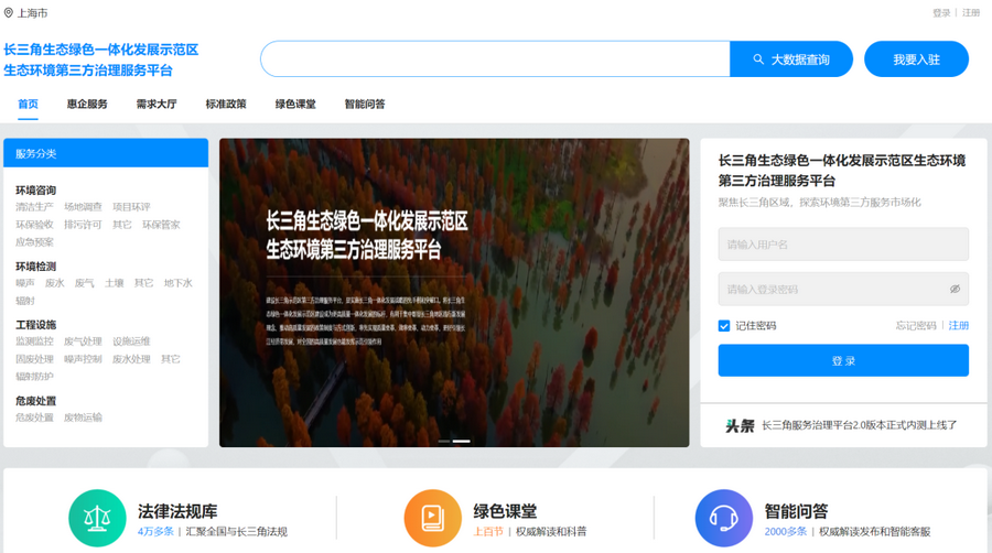 南大環(huán)規(guī)院開發(fā)的長三角生態(tài)綠色一體化示范區(qū)生態(tài)環(huán)境第三方治理服務(wù)平臺(tái)正式上線