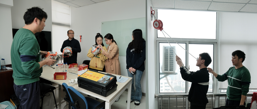 在消防隊員的指導下,員工們有序參與滅火器實操訓練,每個人都親手使用一次滅火器。此外,員工們還在專業人員的指導下完成了緩降器及防護面罩實操演練。