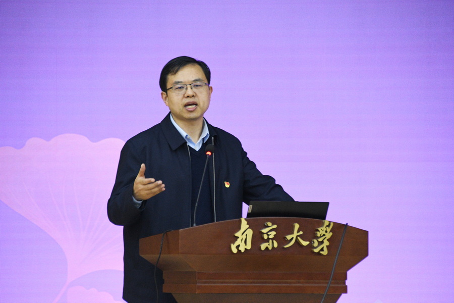 奮進新時代,育人譜新章。4月26日,南大環規院與新生學院安邦書院、健雄書院在鼓樓校區開展學習貫徹習近平新時代中國特色社會主義思想主題教育聯學活動。中央第56指導組組長、西北工業大學原黨委書記張煒及指導組成員,南京大學黨委常務副書記楊忠出席聯學活動。