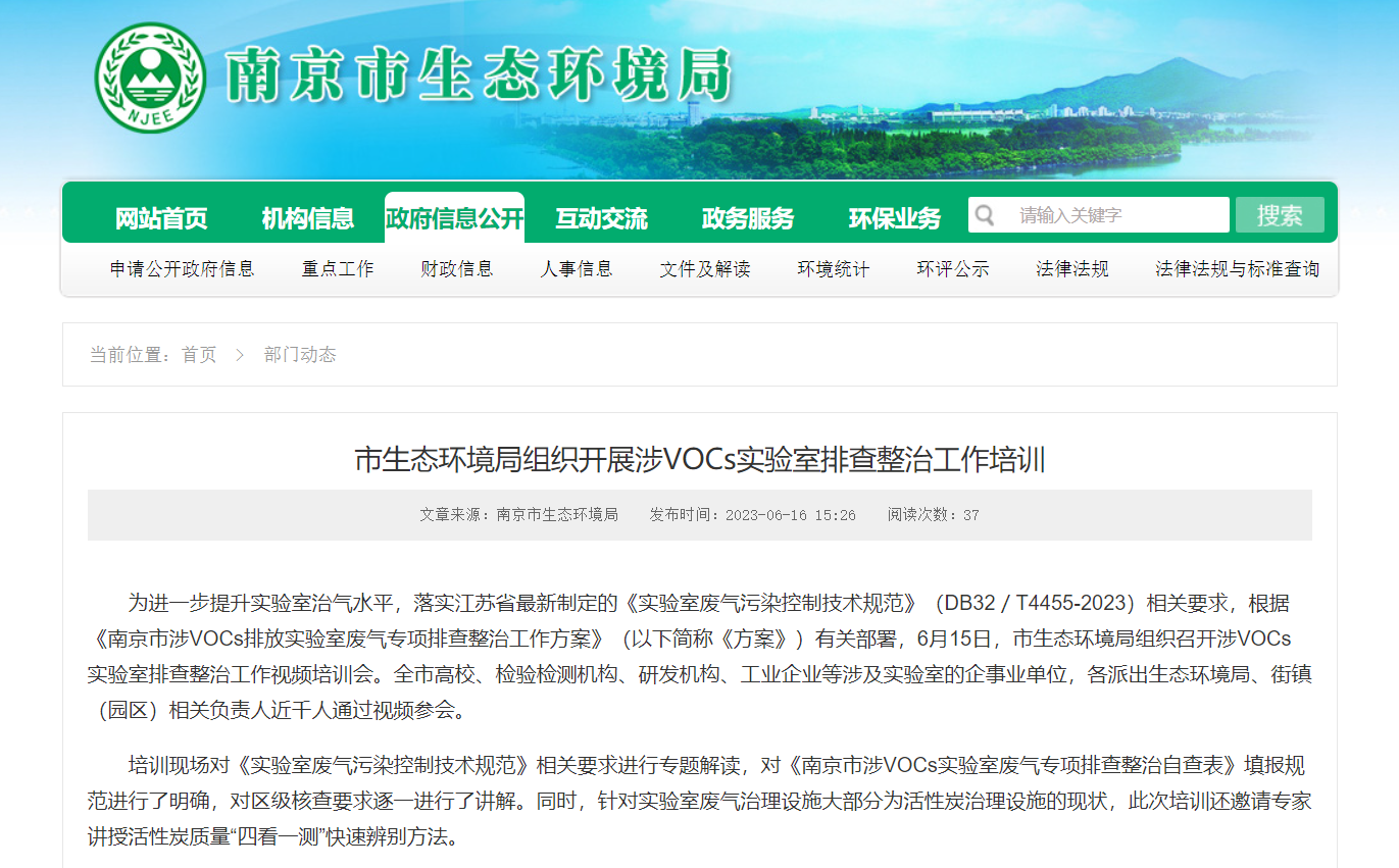 為進一步提升南京市實驗室治氣水平,落實《實驗室廢氣污染控制技術(shù)規(guī)范》(DB32/T4455-2023)相關(guān)要求。近日,南京市生態(tài)環(huán)境局組織召開涉VOCs實驗室排查整治工作視頻培訓(xùn)會,委托南大環(huán)規(guī)院該標準編制組開展標準專題解讀。