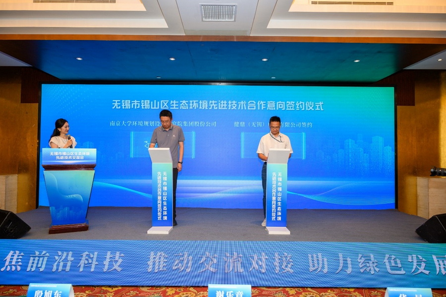 2023年8月4日,由無錫市生態環境局、錫山區人民政府主辦,錫山生態環境局承辦的生態環境先進技術交流會在錫山舉行,相關管理部門和企業負責人百余人現場參會交流,南大環規院工程技術中心專家張紀文受邀在大會上做技術報告,中心主任助理孫永嘉與相關企業簽訂意向合作協議,并接受采訪。