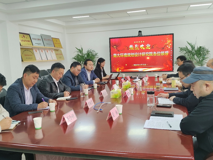 4月13日上午,南大環規院董事長吳俊鋒帶隊赴安徽省生態環境科學研究院交流,安徽省生態環境科學研究院院長鄢達昆、副院長張瀏出席座談交流。