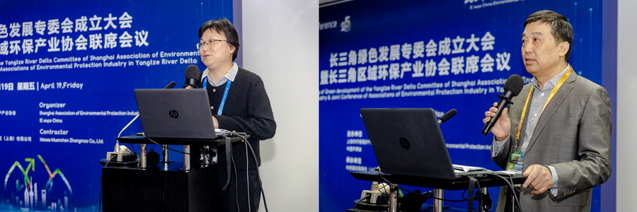 4月19日,上海市環境保護產業協會長三角綠色發展專委會成立大會在25屆中國環博會期間舉辦。上海市生態環境局綜合規劃處處長魏峻、四級調研員唐煒,長三角示范區執委會生態規建部副部長李程,長三角區域環保產業協會領導、省市環科院領導蘇國棟、陳志鵬、尹文德、伏晴艷、張瀏、張磊,南大環規院董事長吳俊鋒等領導,以及上海建工集團、江蘇省環保集團、安徽省環保集團、浙江環科等30家專委會成員單位代表參會。
