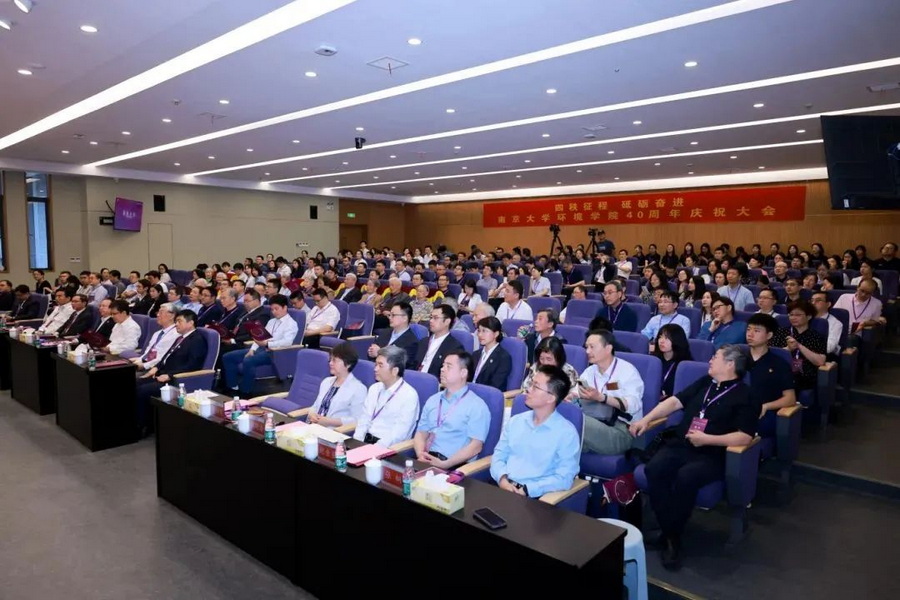 5月19日上午,“四秩征程 砥礪奮進——南京大學環境學院40周年慶祝大會”在環境學院大樓B111報告廳順利舉行。中國工程院院士、南京大學黨委書記譚鐵牛,江蘇省生態環境廳廳長蔣巍,中國工程院院士、北京師范大學環境與生態前沿交叉研究院院長余剛,江蘇省生態環境廳原一級巡視員于紅霞,江蘇金山環保工程集團董事長、黨委書記錢盤生等有關單位領導出席大會。中國工程院院士張全興,中國工程院院士、南京大學環境學院院長任洪強,環境學院校友代表和師生代表等200余人參加大會。環境學院黨委書記劉建萍主持大會。