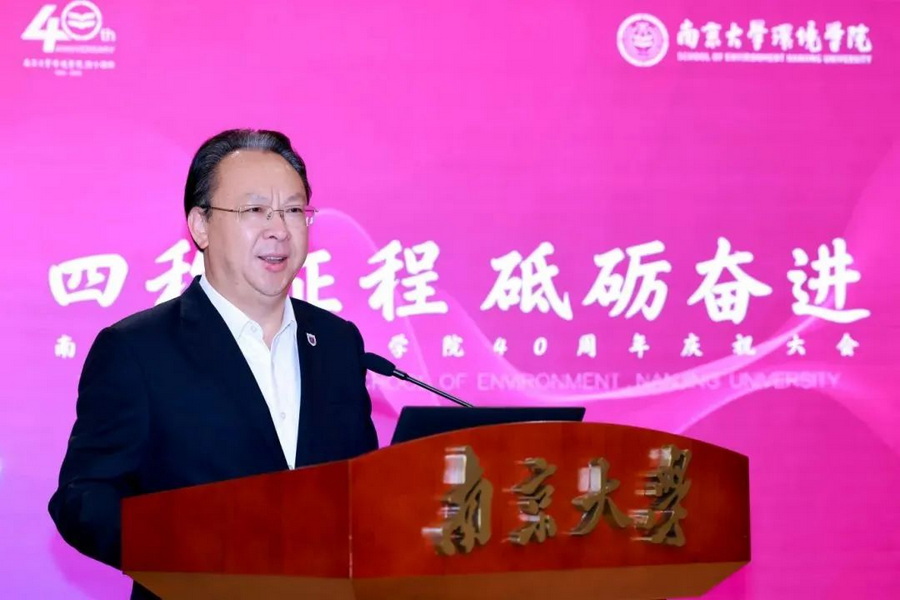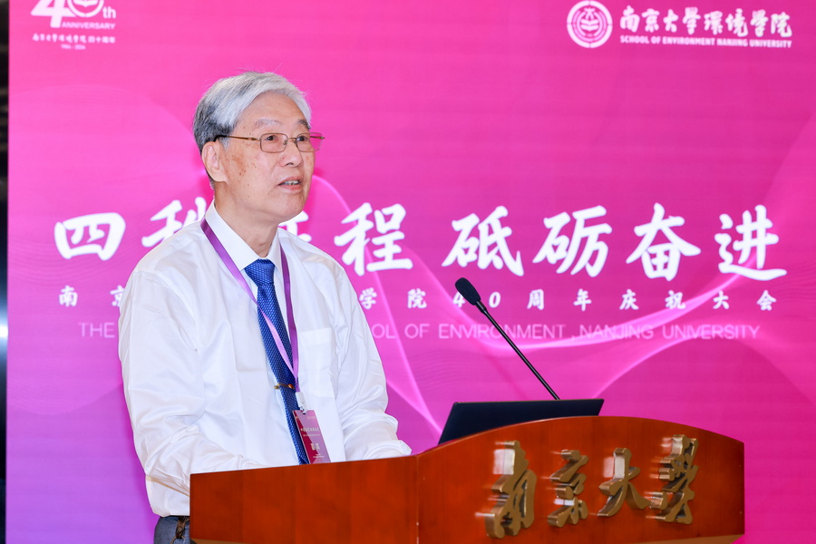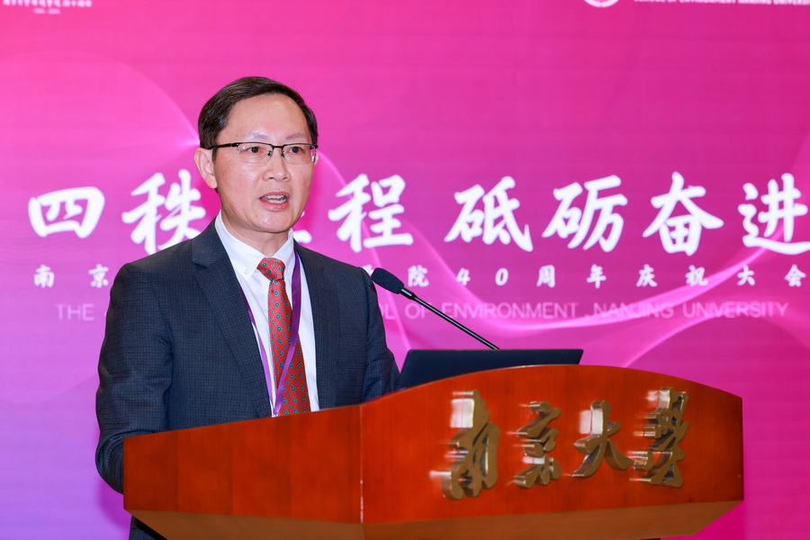 譚鐵牛在致辭中表示,從1984年建系至今,環境學院秉持“誠樸雄偉、勵學敦行”的校訓精神,與時代同呼吸、與民族共命運、謀國家之強盛、求科學之進步,用40年的砥礪奮進,書寫了教書育人、科研報國的精彩篇章。他代表學校向所有為南大環境學科發展作出貢獻的前輩和師生員工致以敬意,向對環境學院給予大力支持的有關部門和各界朋友表示感謝。