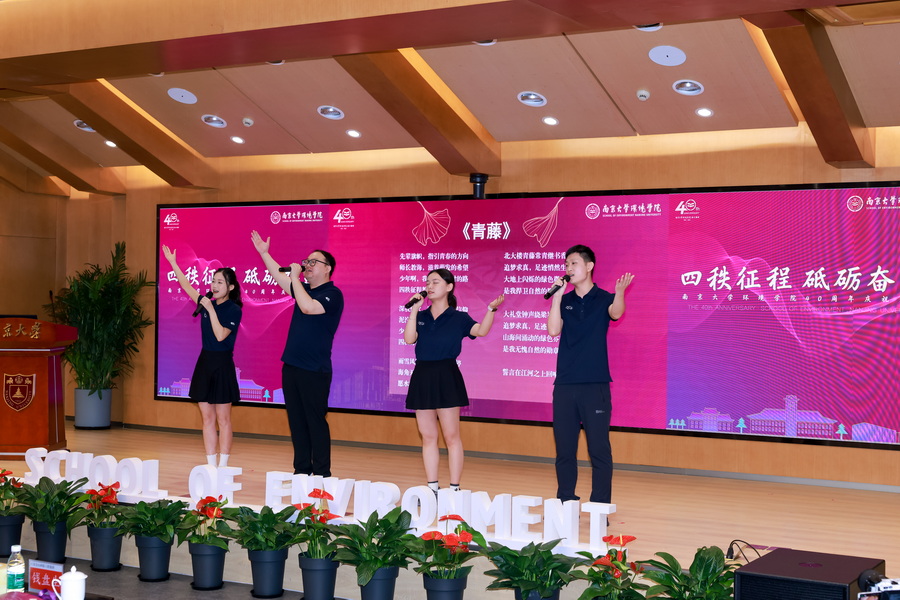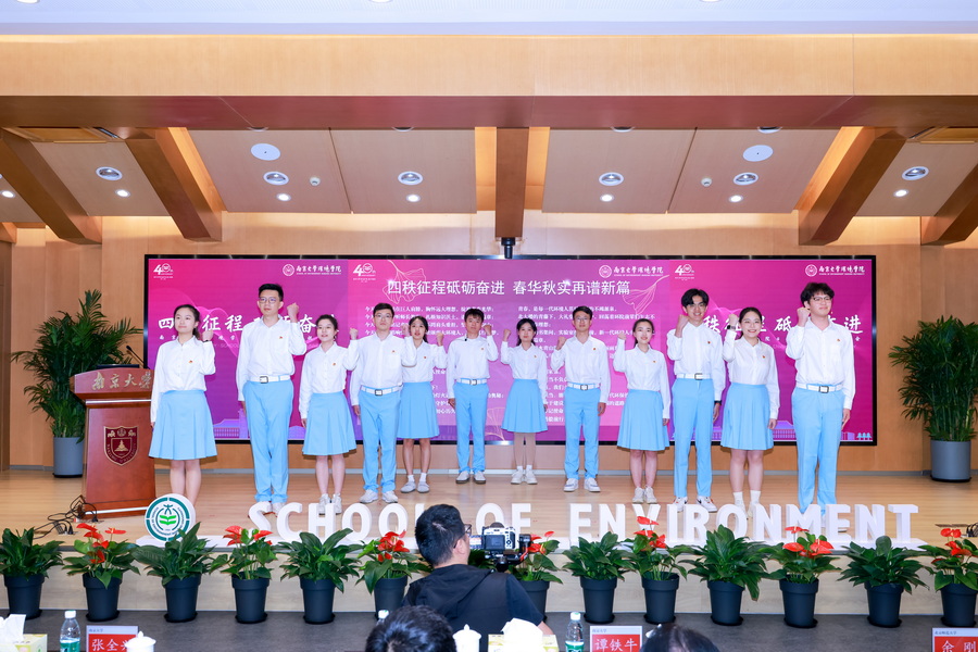 任洪強回顧了學院40年來在黨建引領、行政服務、教育教學、科學研究、社會服務、國際合作等領域取得的成果,并表示,環境學院將持續深入學習貫徹習近平新時代中國特色社會主義思想,全面推進落實南京大學“奮進行動”,加快建設高能級平臺,打造新質態人才培養體系,推動創新人才隊伍建設,全面提升學科國際影響力,努力在全面推進中國特色世界一流南大建設的奮進行動中體現“環院精神”,在服務國家社會與經濟高質量發展、美麗中國建設事業中做出“南大環境人”的應有貢獻。