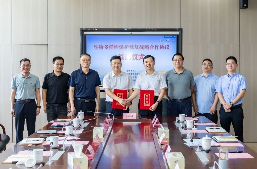 8月12日,南大環規院與江蘇鹽城濕地珍禽國家級自然保護區(以下簡稱保護區)在鹽城簽訂生物多樣性保護修復戰略合作協議。保護區管理處黨組書記、主任陳志洲,南大環規院黨委書記陸朝陽出席活動并講話,南大環規院助理總裁蘆昱介紹了合作內容,保護區管理處副主任陳浩主持簽約儀式。
