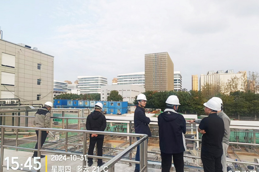 會上,南大環規院各部門分別介紹了低溫蒸發結晶、信息化平臺、廢氣治理技術與裝備等方向的研發與產業化應用情況。會后,孫銀華一行至示范項目現場實地考察,對我院成果轉化、工程技術、裝備質量等方面表示高度贊賞。