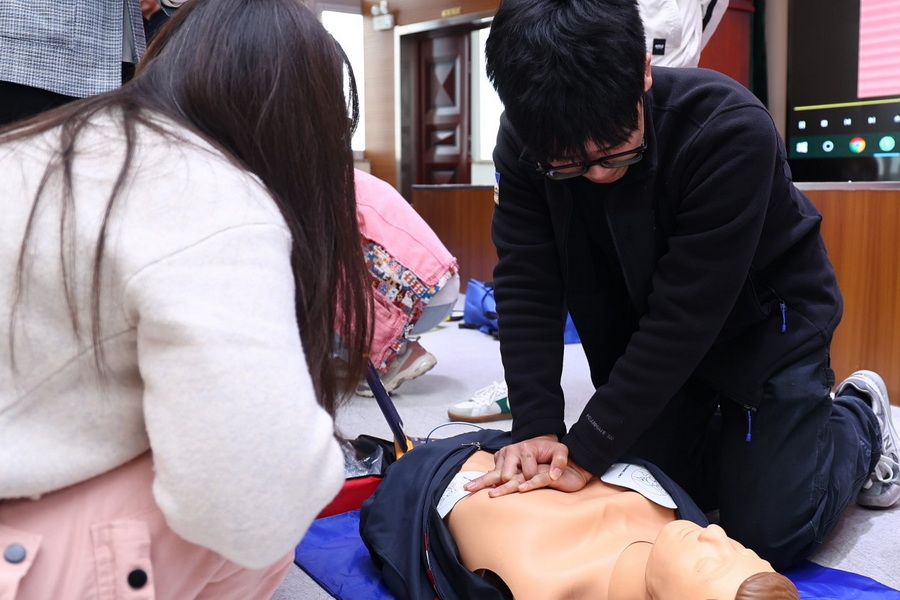 在急救操作演練中,心肺復(fù)蘇、心肺復(fù)蘇儀(AED)、人工呼吸等急救技能的訓(xùn)練更加貼近實(shí)際應(yīng)用場景。省紅會老師和南大紅會的志愿者針對每位員工的操作手法進(jìn)行了細(xì)致專業(yè)的指導(dǎo),確保每一個動作都準(zhǔn)確到位,讓員工在關(guān)鍵時刻能夠真正發(fā)揮急救作用。