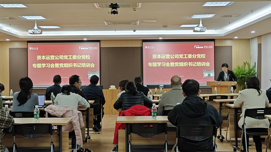 近日,由南京大學資本運營有限公司黨工委組織的分黨校專題學習會暨黨組織書記培訓會順利舉辦。資本運營公司黨工委書記王洪濤、董事長、總經理方文暉出席會議,南大環規院黨委書記、首席專家陸朝陽在培訓會作題為《生態文明與大國經濟》的專題黨課,會議由資本運營公司紀工委書記邱玥琰主持。